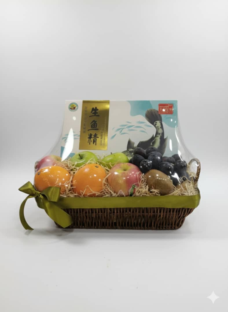 Exquisite Fruit Basket with Premium Fish Essence Gift Set