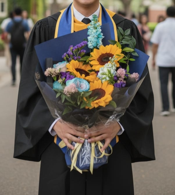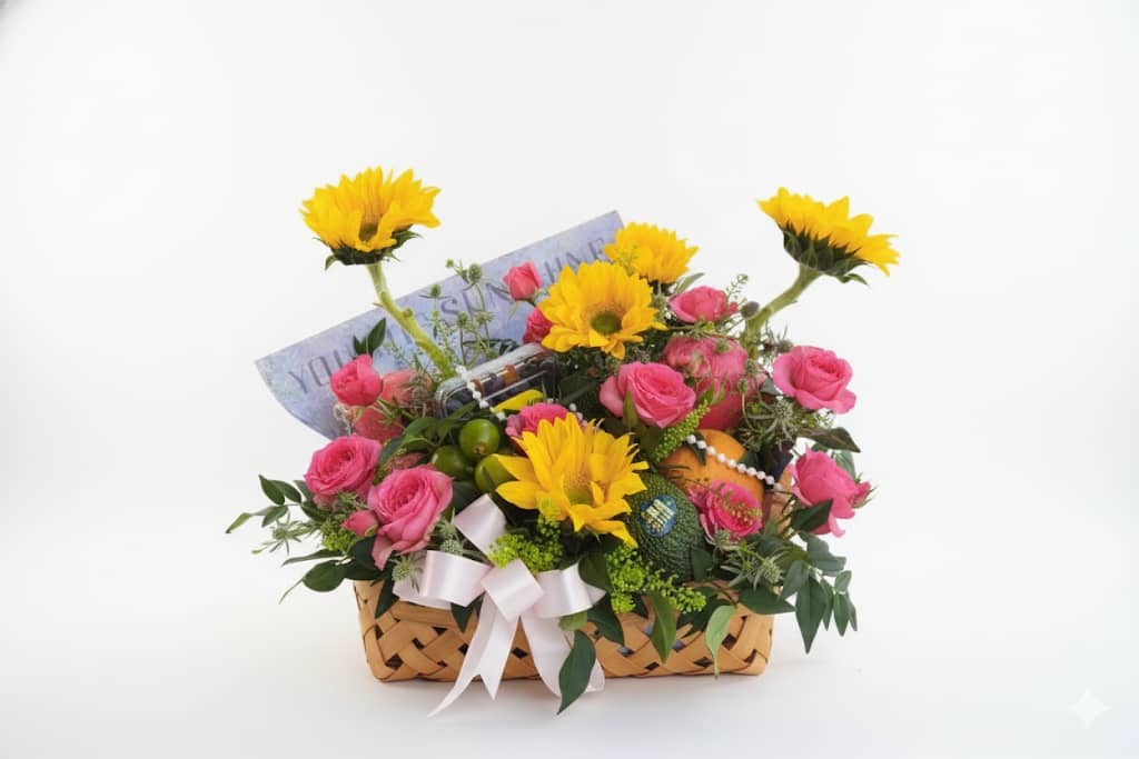 Radiant Blooms Basket: A Symphony of Sunflowers and Roses
